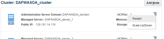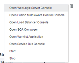 Now you need to restart WebLogic. If it was just the Managed Servers, you would be able to do it from the WebLogic Admin console, but since we also made changes to the Admin Server, you need to restart the full cluster. If you attempt to do from the Admin console, you will lose immediate access to it as soon as it stops. A simple way to do is via the SOA CS Console.