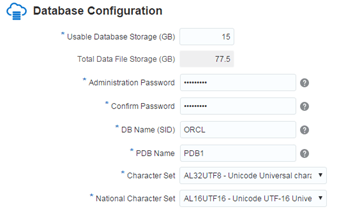 DB Name SID, PDB Name, character set, National Character set: Assign accordingly to your needs. In my case I left them all as the default values.