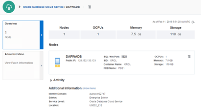 The details of the selected DBCS instance show up. Take note of the following information as you may need it for subsequent steps: