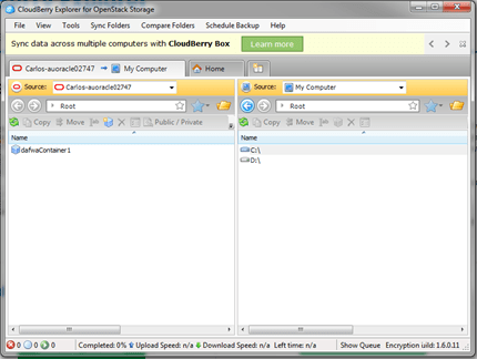 3. It will show any existing containers as if they were simple folders. This tool allows you to create, update or delete containers, as well as to move object files from your hard drive or any other Cloud Storage instance (right pane), into the left pane, as if it was any other FTP tool.