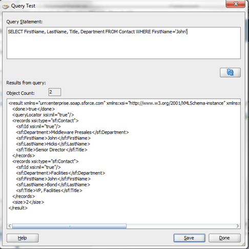 For the purpose of this example and in order to align with the first Salesforce integration with OSB in this document, choose SOSL/SOQL and enter the same query that was used in the previous example.