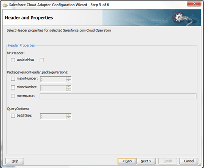 For more information, refer to the Oracle Cloud Adapter User Guide for Oracle Cloud Adapter for Salesforce.com, 11g Release 1 (11.1.1.7.0) or 12.x documentation.
