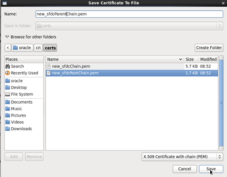 • If you are using KSS instead of DemoTrust.jks, select each certificate in the path and for each select the option X.509 Certificate with Chain (PEM).