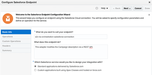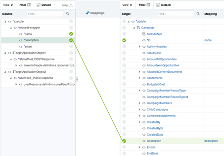 - Salesforce Enterprise WSDL can be pretty daunting. For example simply for Campaigns, it has over 185,445 sub-elements. This is the type of complexity that ICS is helping us deal with. If you see a Warning saying that the target update schema has a large number of elements… just say OK, in this case we are going to update only the “Description” – If we had to update an element that is not shown, we would have to use other approaches, such as SOQL.