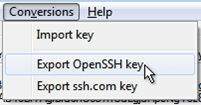 To save the key in OpenSSH format, open the Conversions menu and select Export SSH key. This will be the same key as above, just saved in a different format.