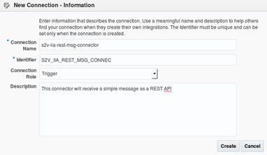 - Enter a name for your REST adapter. In my case, I’m calling it “s2v-iia-rest-msg-connector”