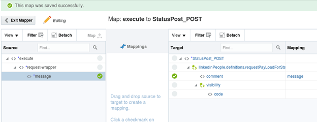 In the mapper drag the message element under “request-wrapper” into the target comment element.