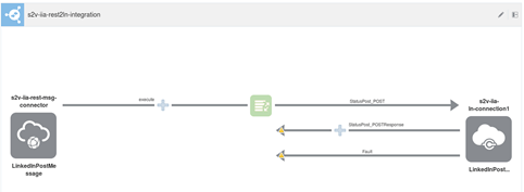 In this section we are going to create a very simple integration to Post a message to my LinkedIn account. We will expose this as a REST API using both connectors that we built previously, the LinkedIn and REST connectors respectively.
