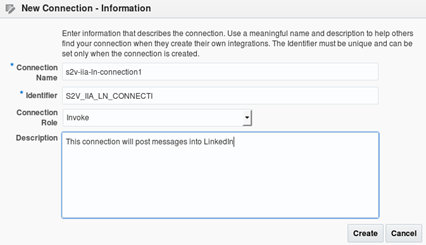 - It will show you the LinkedIn connection wizard. Enter a name and description.