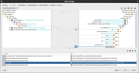 - Then when implementing the BPEL Invoke action, assign the inputVariable as the uid. Set the password to default “secret” (they should be at least 5 characters and should not contain the username).