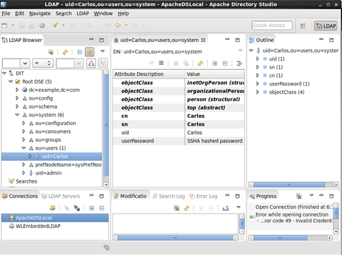 - Go to Apache Directory Studio and reload the entries. You should see the user that you just created.