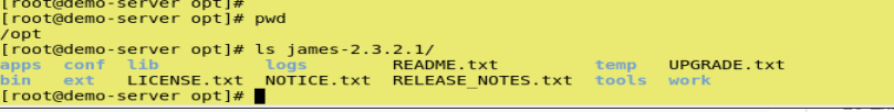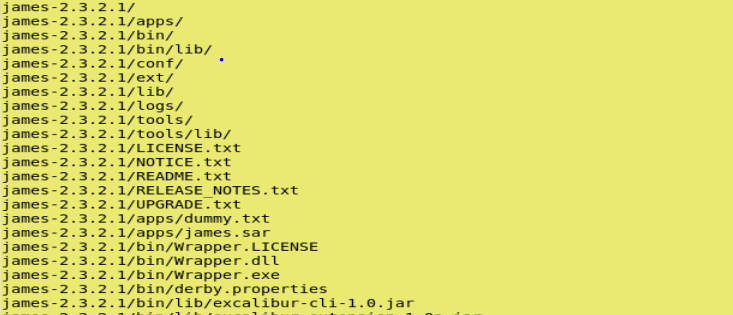 When the unzip completes you should now have a number of directories created under /opt/james-2.3.2.1 directory as per the screenshot below