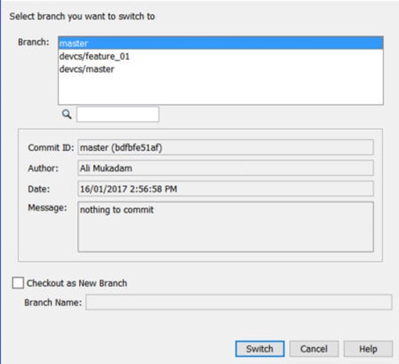 We’ll add the new code in a new branch. You can create the new branch either in DevCS itself: