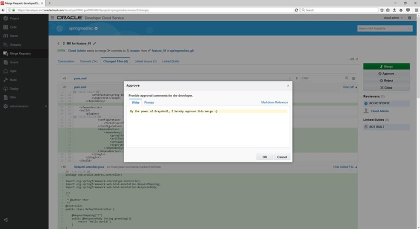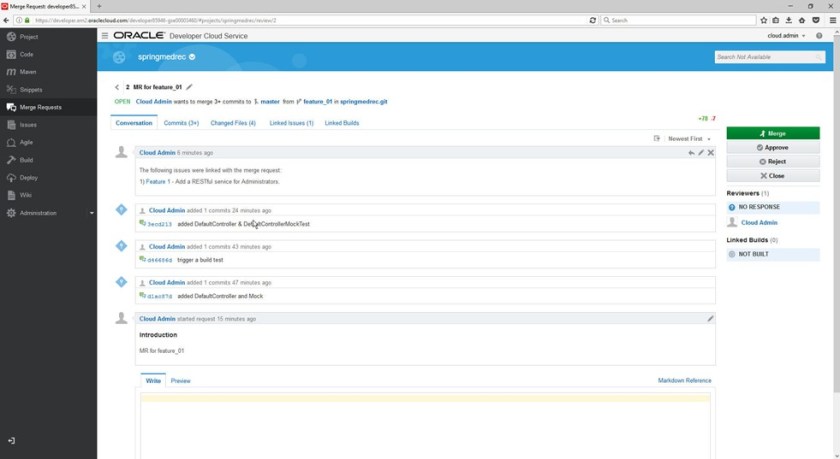 In the previous blog post, we looked at how to set up a basic project using Spring Boot. In this post, we want to continue exploring the DevCS capabilities that enable developers to contribute code and collaborate.