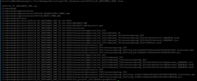 • This will create a folder called icspackage within which all the ICS Integration files including metadata, configurations, resources, etc. are located.