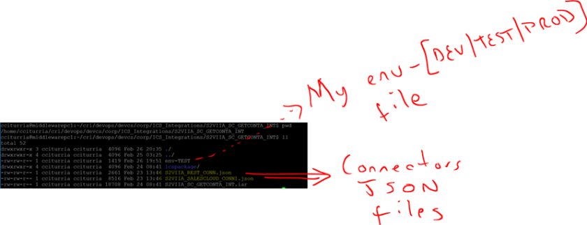 • Make sure that your env-[DEV|TEST|PROD] configuration file, as well as your ICS Connectors JSON config files are under the Integration folder.
