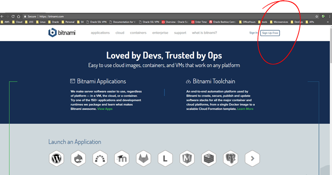 - Simply go to https://bitnami.com and click on Sign Up Free.