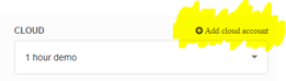 - Now, let’s configure the Cloud provider. Click on “+Add cloud account“