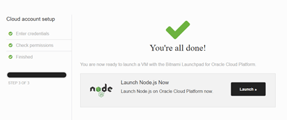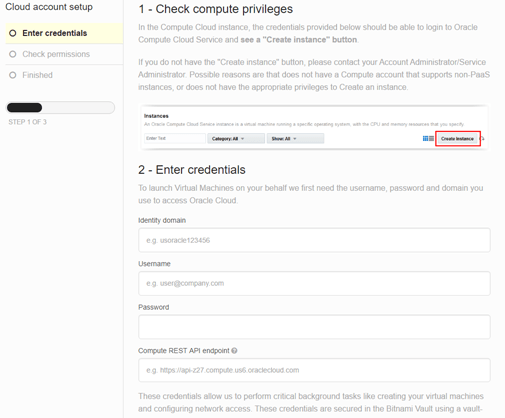 - Bitnami will attempt to connect to your Oracle Public Cloud account. Make sure you get a successful message.