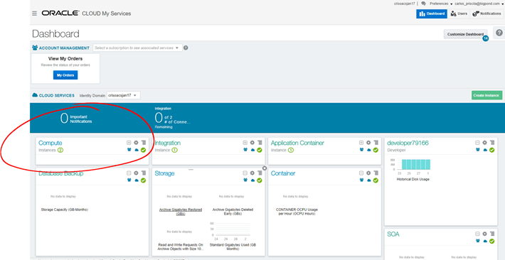 - Identity Domain – You get this one when you get your Oracle Public Cloud account. Normally you customise it specifically to your company or project name.
