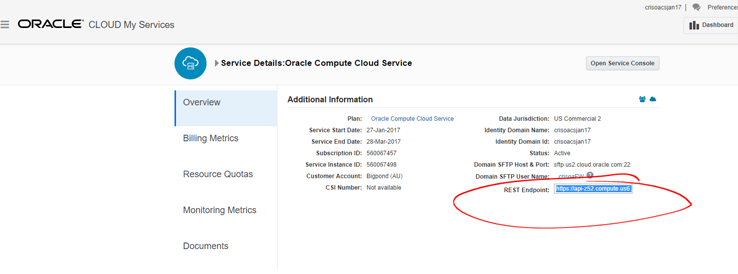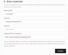 - Username – Make sure it is a user with access to Compute Cloud Service. Your cloud admin username would do.