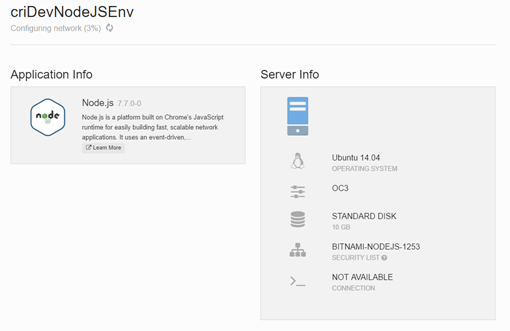 This will immediately instruct Bitnami to build your requested environment inside your Oracle Public Cloud account.