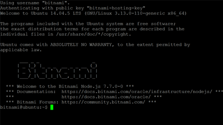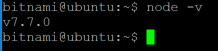 The Welcome message already tells you that this is the Bitnami Node.js 7.7.0-0 – However to prove NodeJS is really installed and ready to use, just check its version: