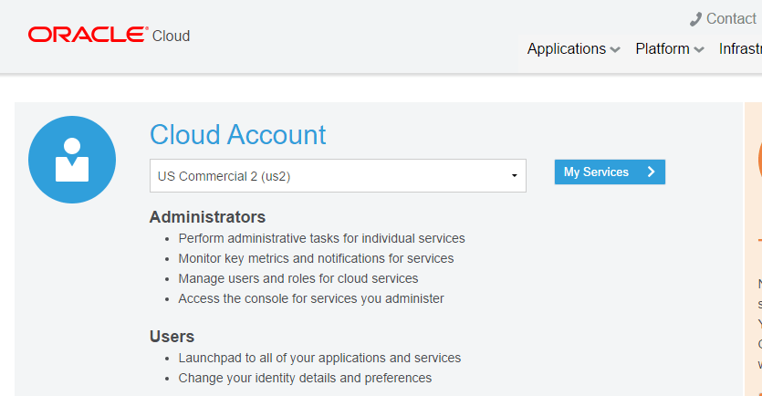 If not already open, Sign in to the My Services application at https://cloud.oracle.com/sign_in .