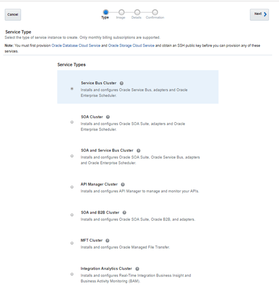 Note: This service type will install and configure Oracle Real-Time Integration Business Insight and Oracle Business Activity Monitoring.