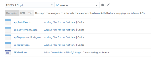 Before you git push this file to your DevCS Git repo, you have to open it locally and set the properties at the top. You can decide what properties you want to keep in this script file and which ones to move as parameterized Build Properties in DevCS. The advantage to keep it in this script file is that you can then version control them, which can be handy. However, the advantage of moving them into DevCS Build Properties, is that they can be dynamically set in the DevCS web console, without requiring a git push. This is up to you! For example, in my case I preferred to move to DevCS the API name, version, URIs and description. This way I can easily reuse the same build task and create different APIs later.