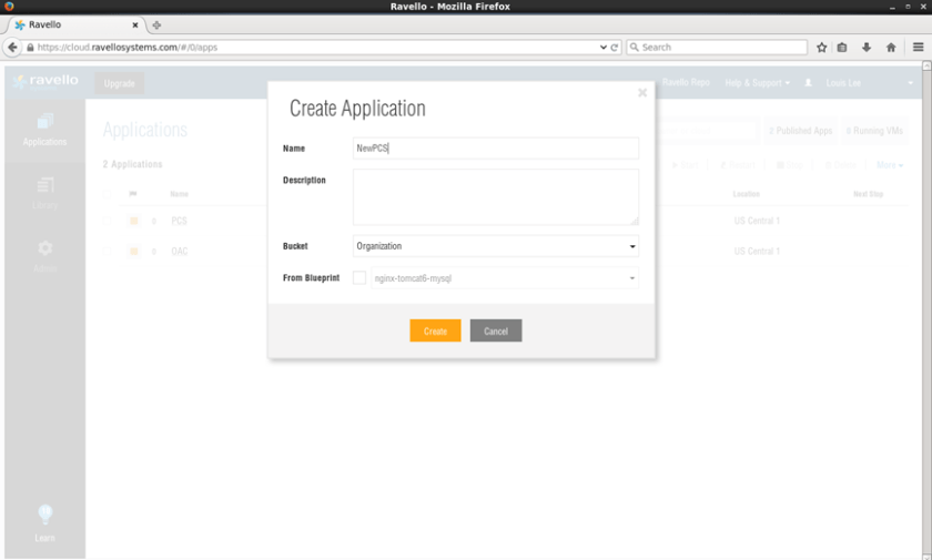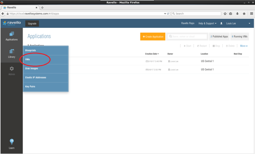 - The following screen is the landing of Ravello. From here you can see your configured applications.