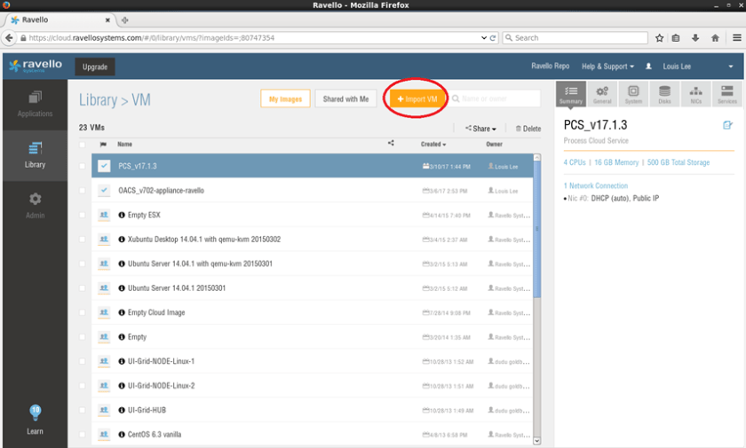 - The Library consists of VM images and disks. It’s a repository of images. Click on the Import VM button.