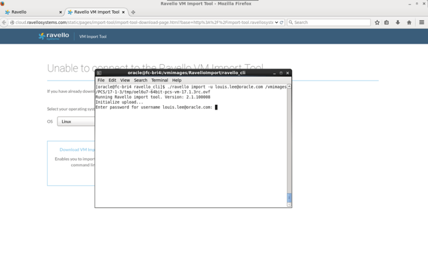 - The operating-system that we used was Linux is have only the command-line-tool. There are command line tools for Mac and Windows. From what we saw as well, there is a Web-GUI tool for Windows as well. After the tool finishes uploading, it starts reviewing the configuration. It took about 1 hour for a 21GB file from Brisbane to the Ravello Cloud. NB: I had some initial issues with OVA files. However, what I did was to unzip the ova which contains the ovf file and the disks. Point the import client to the ovf file.