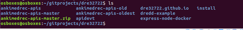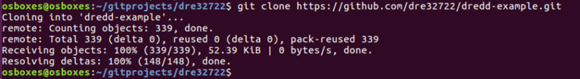 The above step creates a directory under my /home/osboxes/gitprojects/dre32722 directory.