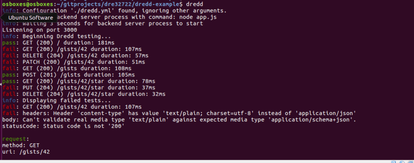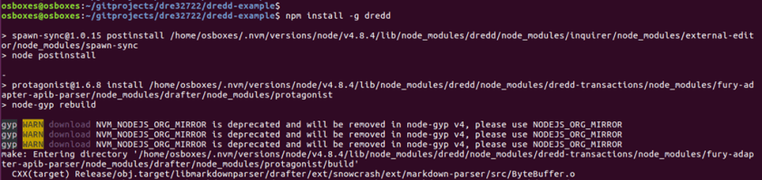 With dredd successfully installed, I then had to install some of the dependencies for the dredd-example project.