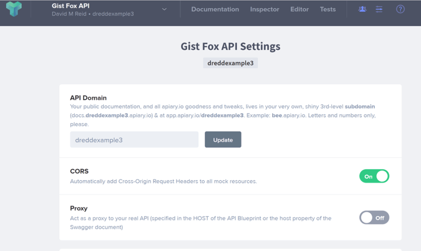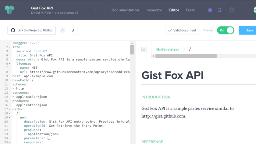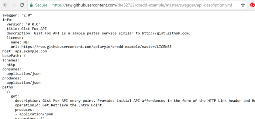 I then pasted the Gist Fox API content from the api-description.yml file into my API project.