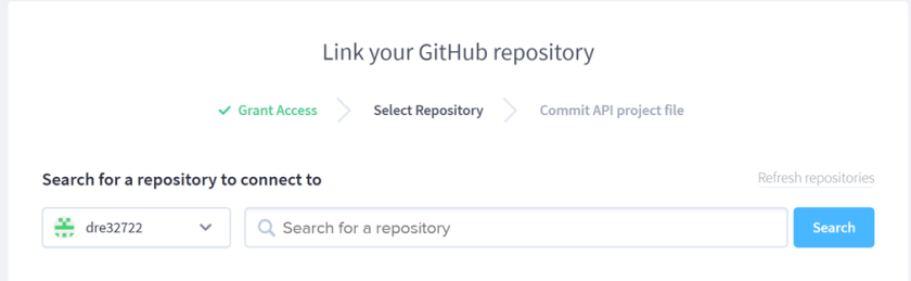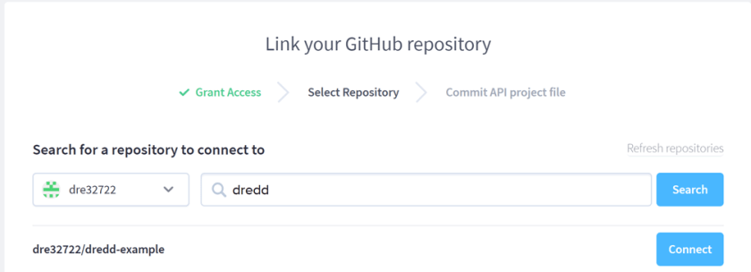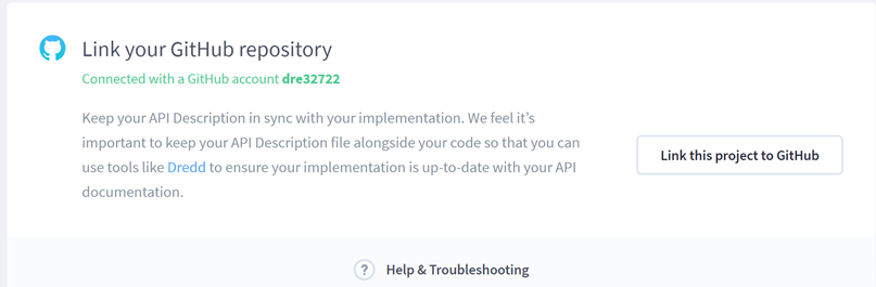 Click the button in order to link the Apiary project to the forked GitHub project. In my case dre32722/dredd-example.