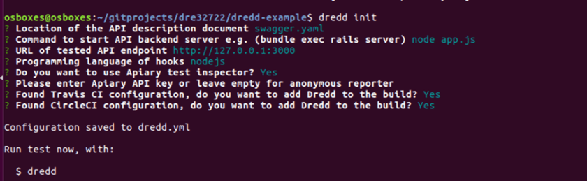 - Initialise the local dredd-example project
