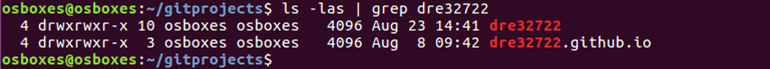 As I have multiple user accounts for various public and private Git projects I now cd to my /home/osboxes/gitprojects/dre32722 directory.