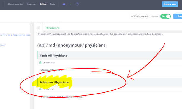 - Ok, now let’s go back and create a couple of Physicians using the “Adds new Physicians” (POST Physicians) API endpoint.