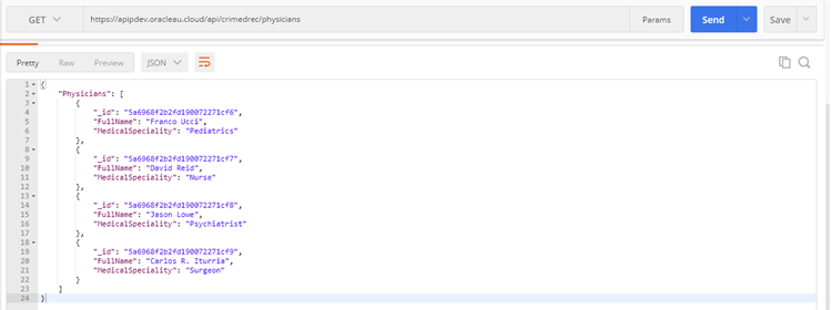 - However, to be sure, go back and retrieve all physicians again. This time, the list should not be empty, it should be populated with the records that you created.