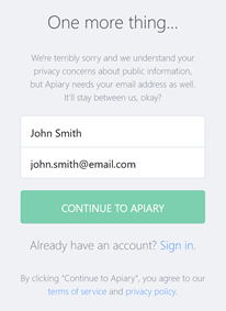 If you still don’t have a personal Apiary account, follow the next steps: