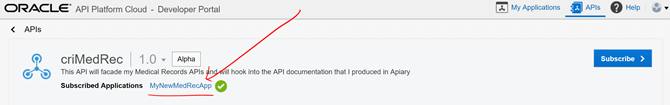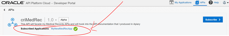 Now, what is needed is to use this Application to subscribe to consume our MedRec API. Click on the APIs tab and click on the MedRec API.