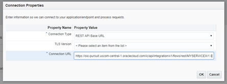 Based URL: https://oic-pursuit.uscom-central-1.oraclecloud.com/ic/api/integration/v1/flows/rest/MYSERVICEX/1.0