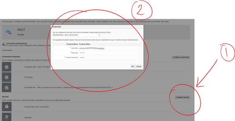 - Configure Security with your OIC username and password.