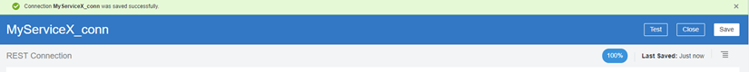 - There’s really nothing else to configure here. Just test, save and close. Make sure the connector is marked 100% complete.