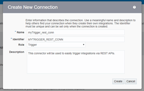 - Call it something like myTrigger_rest_conn of type Trigger. Also feel free to add some description.