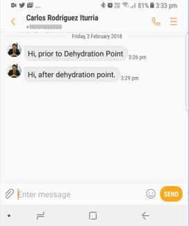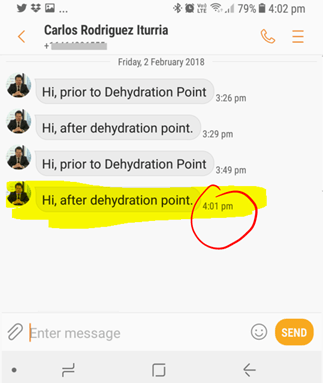 - We receive the first SMS, saying: “Hi, prior to the dehydration point.”