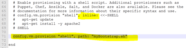 config.vm.provision “shell”, path: “myBootstrap.sh”