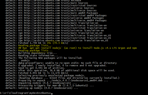 Vagrant also makes it easier to setup bootstrap scripts before starting your VM. For example, in the next instructions I am going to show you how to install NodeJS as part of the bootstrap process.